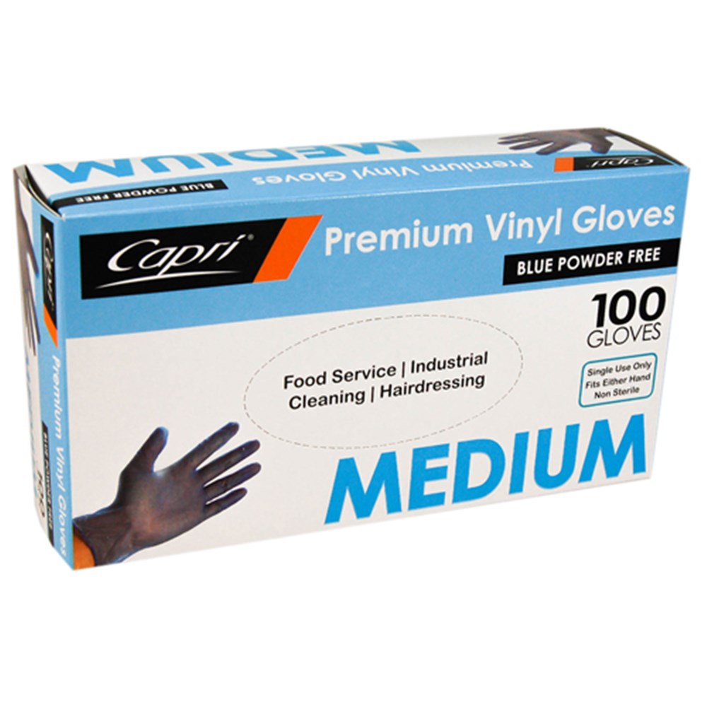 • GLOVE MEDIUM VINYL CLEAR POWDER FREE 100S (10) # C-GV0005 CAPRI
